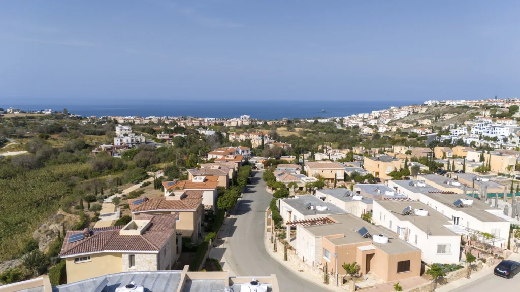 Discover luxury hilltop living in Chloraka, Paphos, where contemporary residences blend seamlessly with traditional Mediterranean design. This exclusive gated community offers a serene and secure environment surrounded by beautifully landscaped gardens, providing the perfect balance of privacy and connectivity. Each home features spacious verandas, terraces, and private gardens, allowing residents to fully enjoy the natural sunlight and gentle sea breezes, creating a relaxing and harmonious lifestyle.