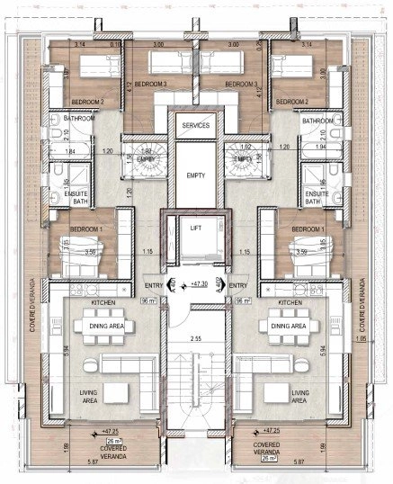 A unique new residential complex located in a quiet suburb of the Columbia district in Limassol. The complex consists of three floors, each with a spacious two-bedroom and three-bedroom apartment. Each residence is made to the highest standards. The price includes underfloor heating, video intercom. Additionally, the complex has video cameras for common areas, electric gates, covered parking and a storage room. The project is designed with a modern lifestyle in mind and combines impeccable architecture, premium amenities and a privileged location surrounded by nature. It is an ideal place for families and professionals who value comfort and privacy.