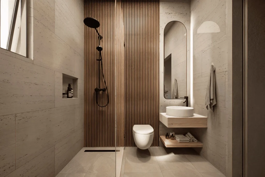The building’s character is defined by warm textures, balanced proportions, and a distinctive façade element that adds a contemporary identity to the project. Inside, the interiors embrace a soft, modern palette, with open-plan layouts, floor-to-ceiling windows, and carefully selected finishes that elevate everyday living.