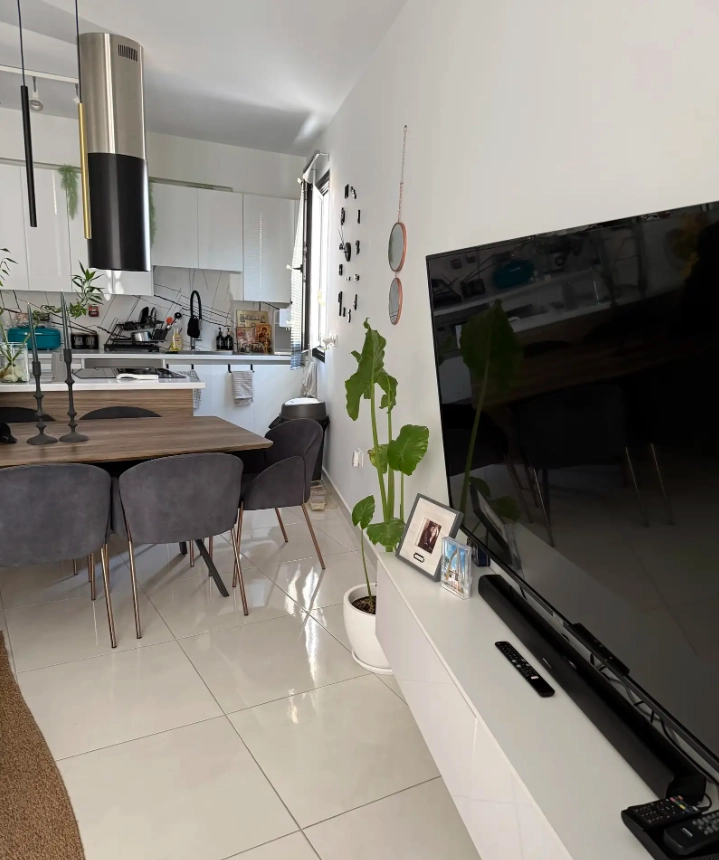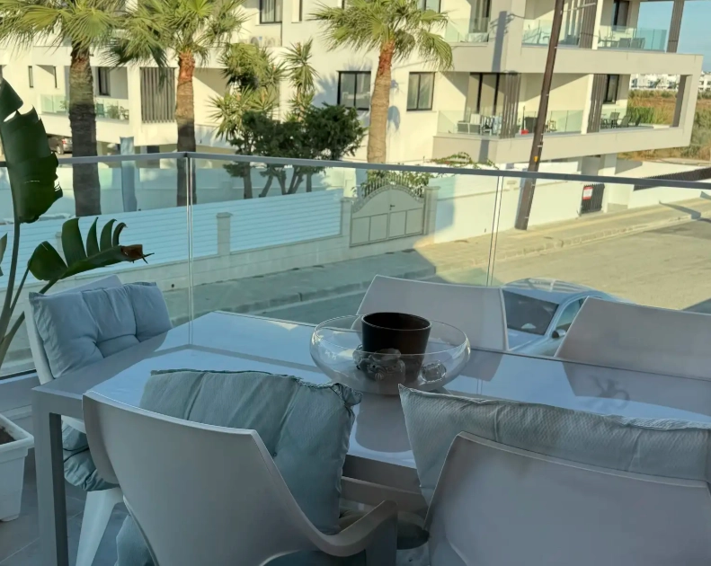 A modern two-bedroom apartment is for sale in Livadia, Larnaca, just minutes from the beach. The property has a total area of 95 m² and is located on the 1st floor of a well-maintained residential building completed in 2021. It is offered fully furnished and features full air-conditioning, a bright kitchen and sitting room, two toilets, and one shower bathroom.