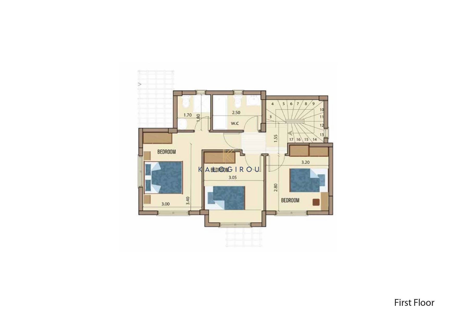Key Ready, Three Bedroom Villa for sale in Agia Triada area, Paralimni. The property is located in a popular resort area, just minutes from the most popular beaches in Famagusta district. Other amenities such as restaurants and local shops are nearby.