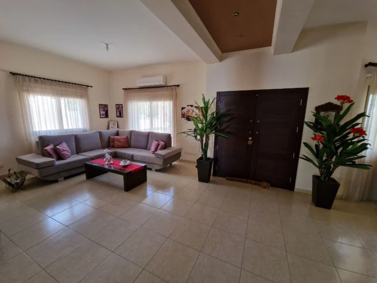 A 5-bedroom house for sale in Pyrgos, Limassol. The house is built on a large plot of 1400 m2, covered area of 350 m2. The first floor consists of 2 living areas, a large kitchen and a small kitchen, 1 bathroom and 1 bedroom, the second floor has 4 bedrooms, one bathroom and a shared bathroom. There are air conditioners in all rooms, wiring for central heating, wiring for the pool, indoor and outdoor parking.