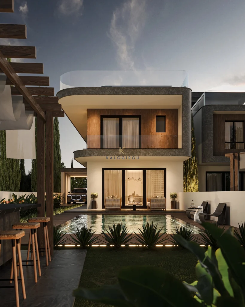 Villa for sale in Dekeleia area, Larnaca. It comprises of ground, first floor and roof garden. Internal covered area of the house is 200 sqm. The ground floor consists of an expansive open plan custom made kitchen, living-dining area, main shower room, one bedroom and covered veranda. The first floor consists of 2 en suite with shower bedrooms and a primary bedroom, en suite with shower & tub, walk in closet and private veranda access (covered). On the top floor, there is a spacious roof garden, comprised of the veranda area with stunning sea view, mechanical room, storage room and utility room which can be converted into a bedroom.