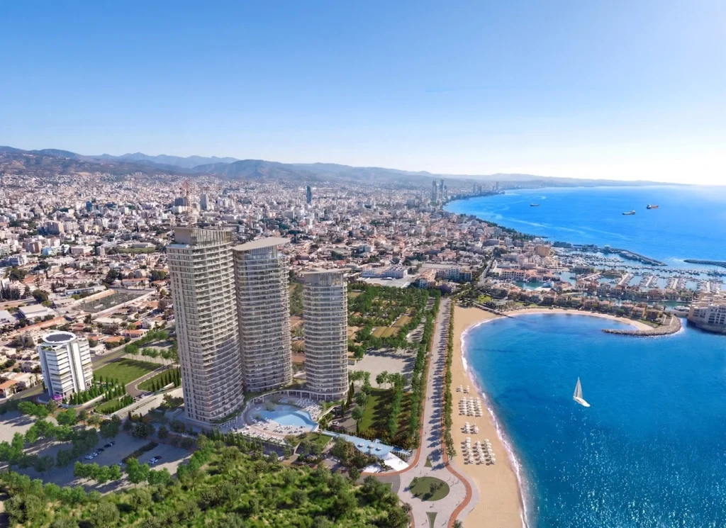 Experience coastal sophistication in this luxurious beachfront tower apartment for sale in Limassol, Cyprus’s most vibrant coastal city. This remarkable seafront landmarked tower offers a freehold investment opportunity with exceptional potential. Strategically situated just 330 meters from Limassol Marina, this exclusive residence places you at the heart of the city’s dynamic downtown district — a hub surrounded by multi-billion-euro infrastructure developments that are transforming the skyline and redefining urban living.