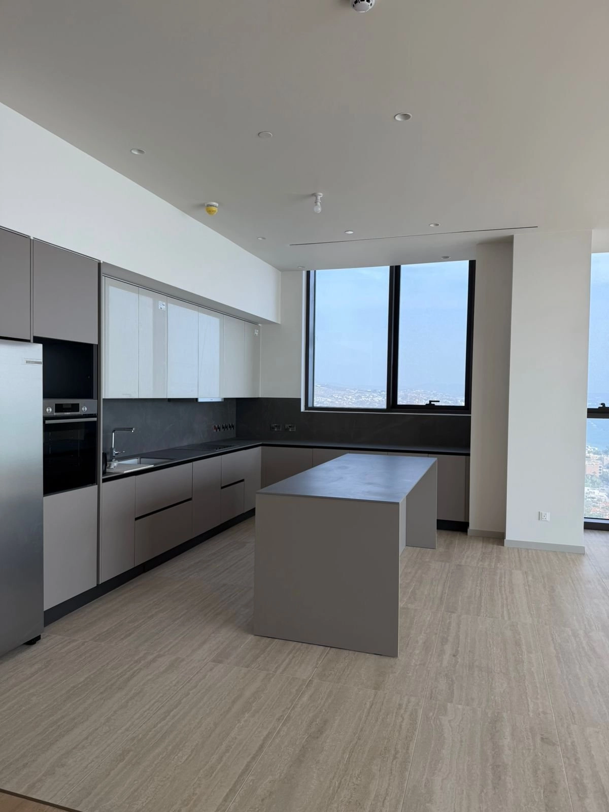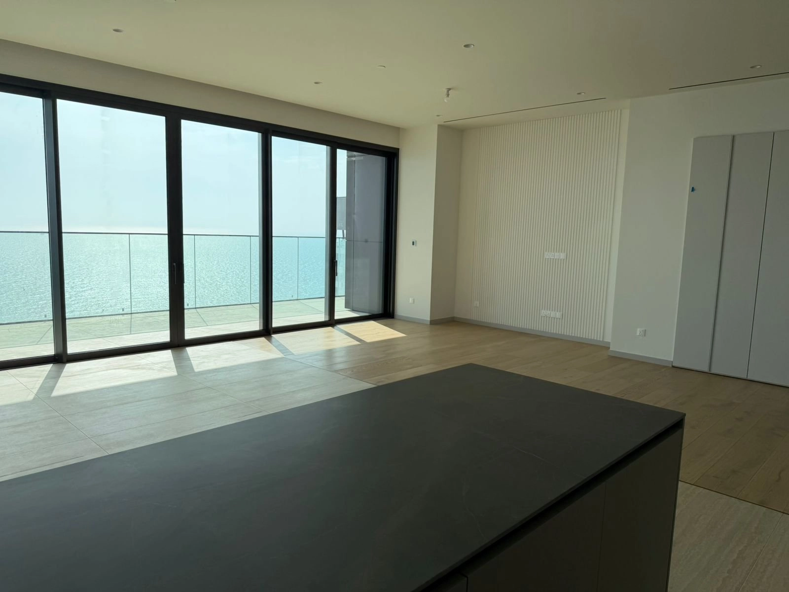 Designed with modern elegance, the apartment includes underfloor heating, a VRV climate control system, and a fully fitted kitchen with premium built-in appliances. Large floor-to-ceiling windows fill the interior with natural light and frame stunning views of the Mediterranean.