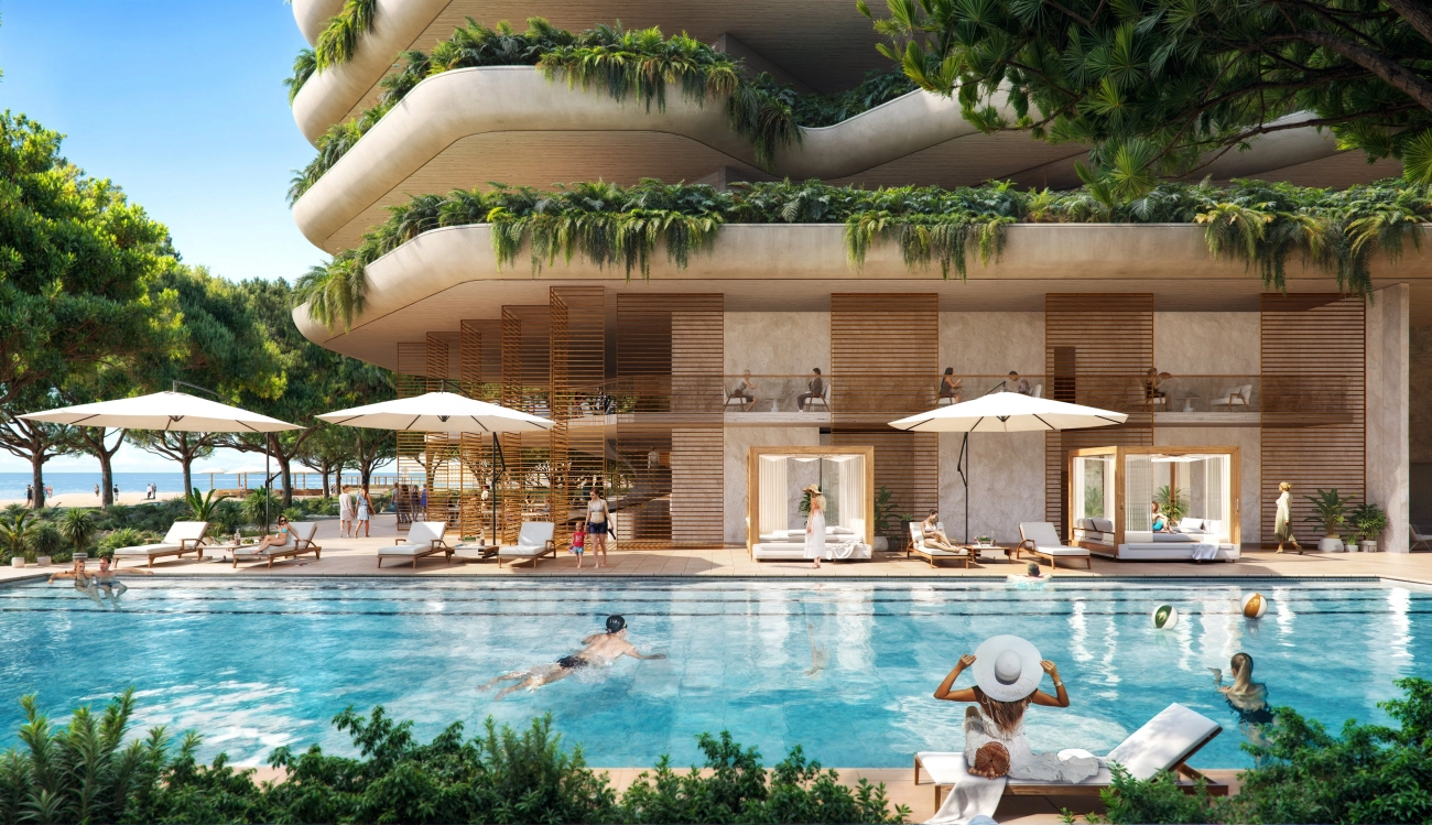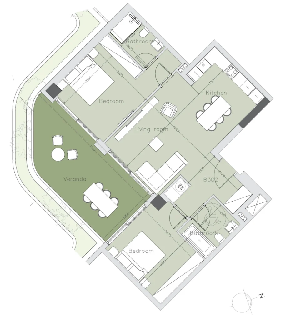The apartment boasts an airy open-plan layout with high ceilings, a generous veranda, and expansive double-glazed windows. Both bedrooms are well-sized, and the bathrooms are finished with high-end marble detailing. Premium materials, underfloor heating, VRV climate control, and European-brand fittings create a comfortable and elegant interior environment.
