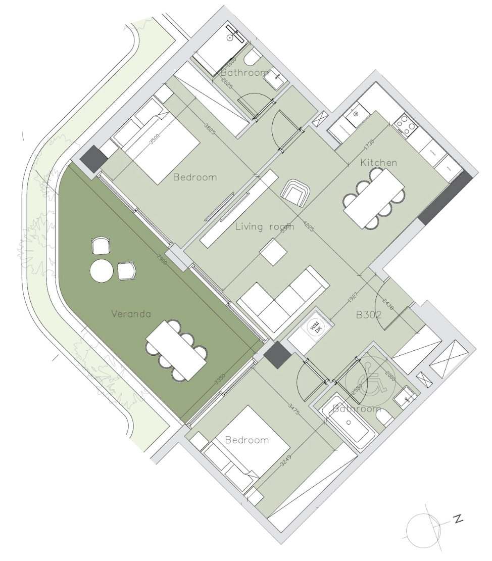 • Covered Veranda: 21 m²
