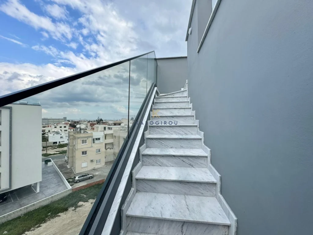 Apartment for Sale in McDonald Drive Thru area, Larnaca. The apartment, with a total internal covered area of 81 sq m and a covered veranda of 23 sq m, is located on the top floor and features an open-plan kitchen, living room and dining room. Each of the two bedrooms has a private bathroom (en suite), while the apartment is characterized by a unique design that combines functionality and aesthetics. In addition, it offers a 50 sq m roof garden, ideal for moments of relaxation. In addition, it includes a storage room and a covered parking space on the ground floor.