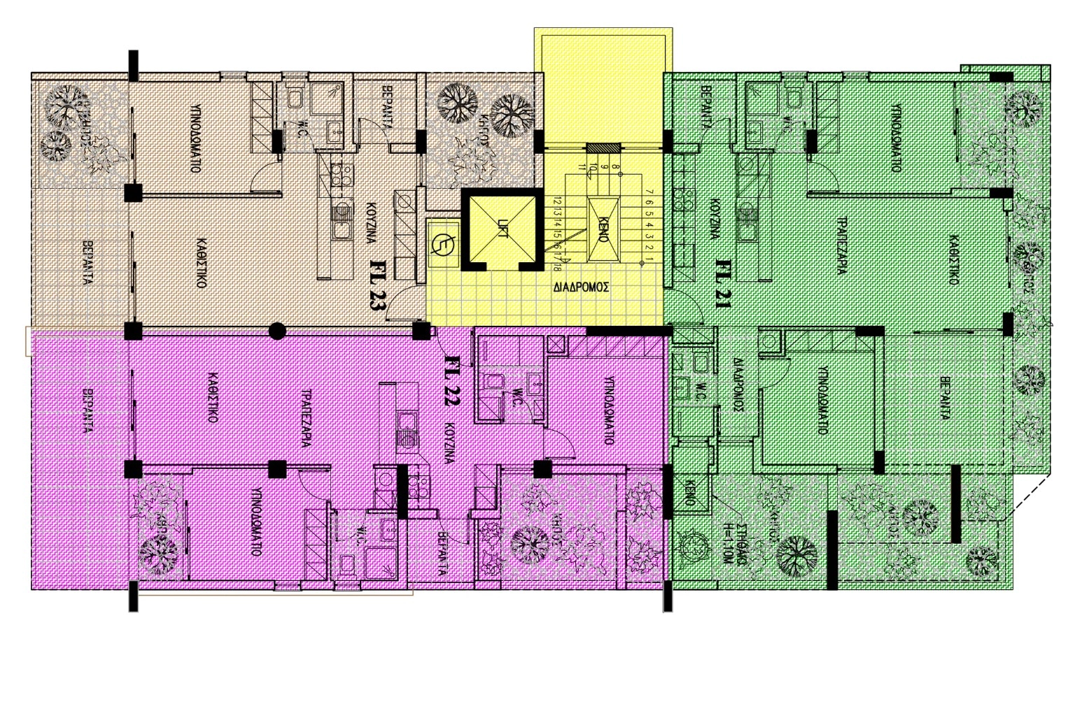 New apartments for sale in Germasogeia Columbia, Limassol. Open-plan kitchen/living room. The complex consists of eight 2 and 3 bedroom apartments and one studio. The apartments have high-quality porcelain tiles and laminate flooring, as well as modern Italian kitchen cabinets and wardrobes. Ceilings in kitchens, toilets and corridors will be decorated with drywall and built-in spotlights. Each apartment has a solar panel for heating water, a reservoir, and a pressurized water supply system. It is located close to all amenities and has easy access to the sea and the motorway.