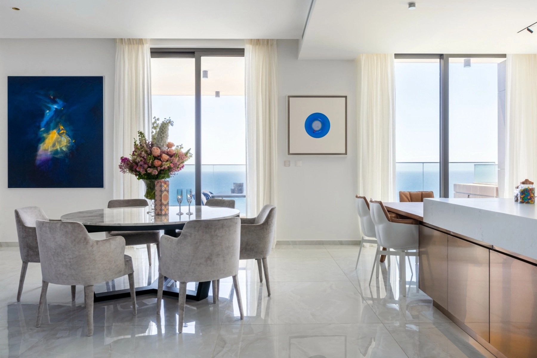 Rising gracefully above the coastline, this landmark residential tower introduces a new level of contemporary living in one of Limassol’s most dynamic seaside districts. Designed with a sculptural architectural silhouette and expansive glazing, the building captures natural light from every angle while framing uninterrupted sea and city views. The project comprises a refined collection of one-, two- and three-bedroom residences, crowned by exclusive multi-level penthouses with private rooftop terraces and panoramic outlooks.