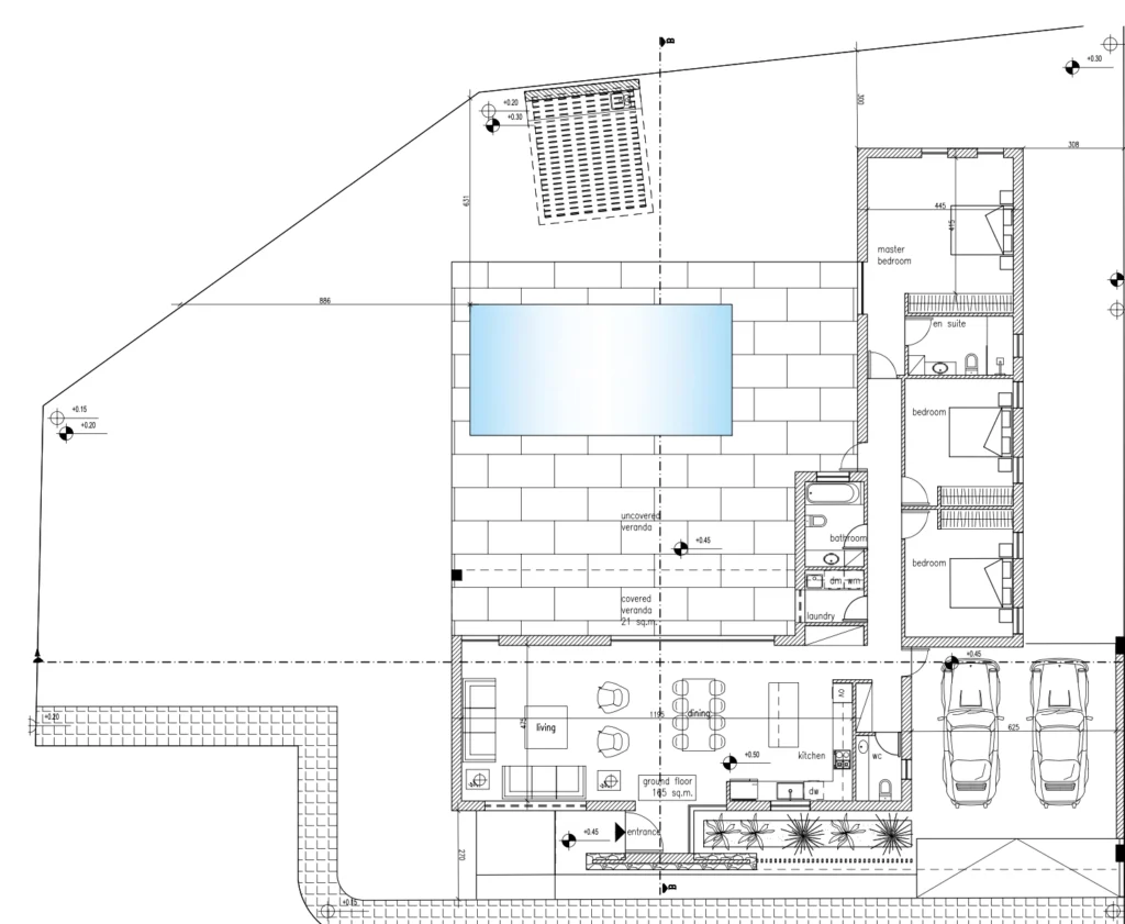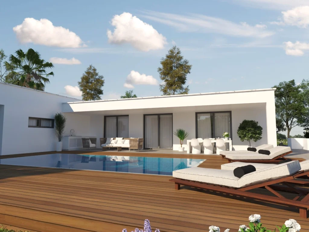 3 bedroom house for sale in a new complex in Pyla, Larnaca. The luxurious two-storey house is surrounded by greenery throughout the complex. Covered garage for two cars of 35 m2, swimming pool, air conditioning, central heating. It is just a 5-minute drive from the best beaches of Larnaca Bay and the Palm Beach and Frixos Suites Hotels. In addition, Larnaca International Airport and the city center are a 15-minute drive away.