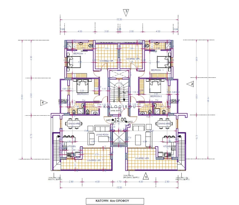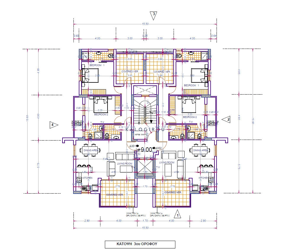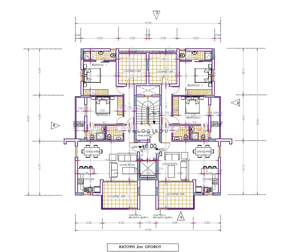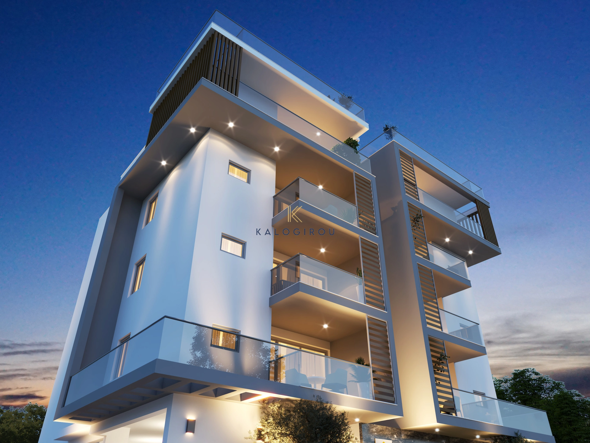Apartment on the fourth floor for sale in Kamares area, Larnaca Town. It consists of open plan kitchen/living/dining area, guest wc, two en suite bedrooms, two covered verandas and roof garden. In addition, the apartment has access to a covered parking and storage room.