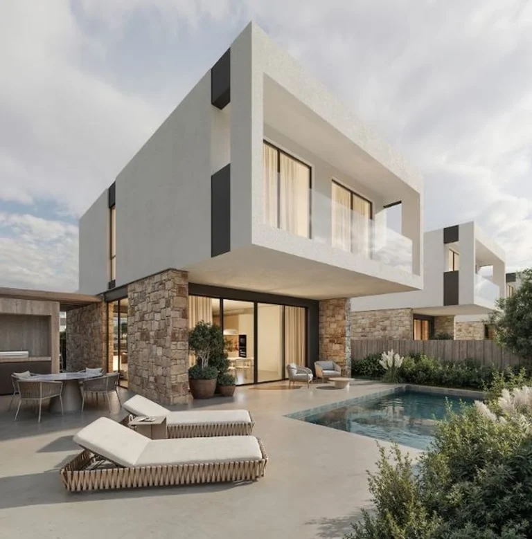 Three Bedroom Detached Villa For Sale in Emba, Paphos – Title Deeds (New Build Process) Introducing a new chapter of contemporary design in Emba. This development consists of 36 modern villas and two identical apartment buildings housing 32 apartments. Seven of the villas boast their own private pool, as well as the large communal swimming pool and kids pool. The project has a reception area, lobby and sitting area, whilst the gym in the basement supports a balanced active lifestyle. - Master bedroom with fitted wardrobes and en-suite - 2 Further bedrooms with fitted wardrobes - Open plan living – dining area - Designer kitchen - Family bathroom - W/C - Provisions for air-conditioning - Unfurnished - Parking - Private pool - BBQ area - Communal swimming pool - Gym on site - Gated community - Internal area 149 m2 - Uncovered veranda 24 – 28 m2 - Covered veranda 33 m2 - Plot 287 – 370 m2 - Close proximity to a number of English speaking private schools - 9 Minutes to the nearest beach - 19 Minutes to the nearest golf course - 24 Minutes to Paphos International Airport - Suitable for Cyprus Permanent Residency – Fast Track - Subject to VAT - Energy Efficiency TBC Emba Emba is one of the largest villages in Paphos located approximately 4 km north of Paphos Town. Here you will find the ancient church of Panayia Chryseleoussis, built in the 12th Century this church holds prime position within the village square. Emba has a few shops, tavernas and a theatre dotted along the narrow winding road which runs through the village. This is an extremely traditional village, most days you will see the Cypriot men sitting outside their local coffee shops often spilling out onto the streets drinking coffee, putting the world to rights and playing a local board game tavli (Cypriot alternative to backgammon). Emba sits 135 m above sea level. ———— * Title Deeds (New Build Process) * Private & Communal Pools * Communal Gym * Contemporary Living * Suitable for Cyprus Permanent Residency – Fast Track * Subject to VAT * Energy Efficiency TBC Emba Emba County: Paphos Sale Type: For Sale Ref #: BLU031N3Type A1/A2