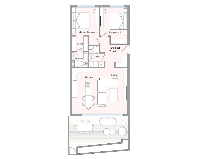 This stylish 2-bedroom apartment offers a beautifully balanced living environment where calm suburban surroundings meet refined modern design. The open-plan living and dining area is bright and inviting, framed by large windows that capture natural light and highlight the seamless connection between indoors and outdoors.