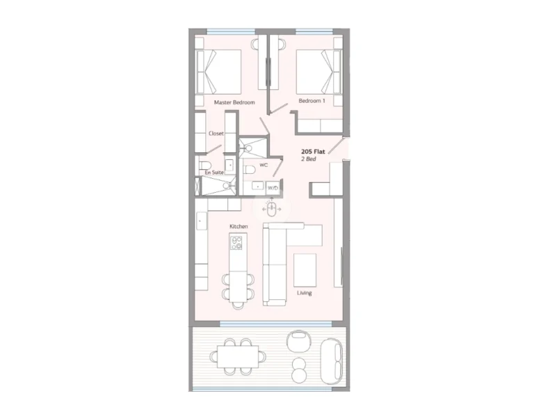 This stylish 2-bedroom apartment offers a beautifully balanced living environment where calm suburban surroundings meet refined modern design. The open-plan living and dining area is bright and inviting, framed by large windows that capture natural light and highlight the seamless connection between indoors and outdoors.