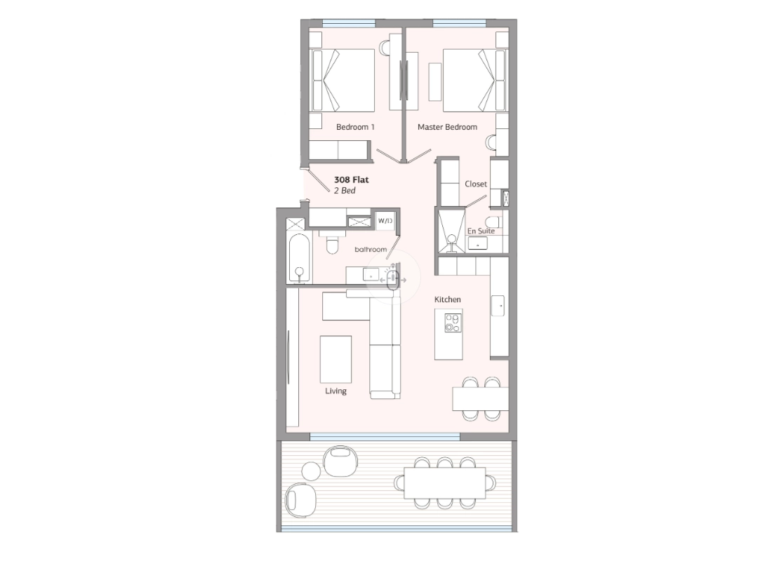 This stylish 2-bedroom apartment offers a beautifully balanced living environment where calm suburban surroundings meet refined modern design. The open-plan living and dining area is bright and inviting, framed by large windows that capture natural light and highlight the seamless connection between indoors and outdoors.