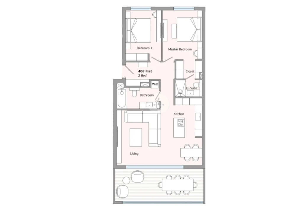 This stylish 2-bedroom apartment offers a beautifully balanced living environment where calm suburban surroundings meet refined modern design. The open-plan living and dining area is bright and inviting, framed by large windows that capture natural light and highlight the seamless connection between indoors and outdoors.