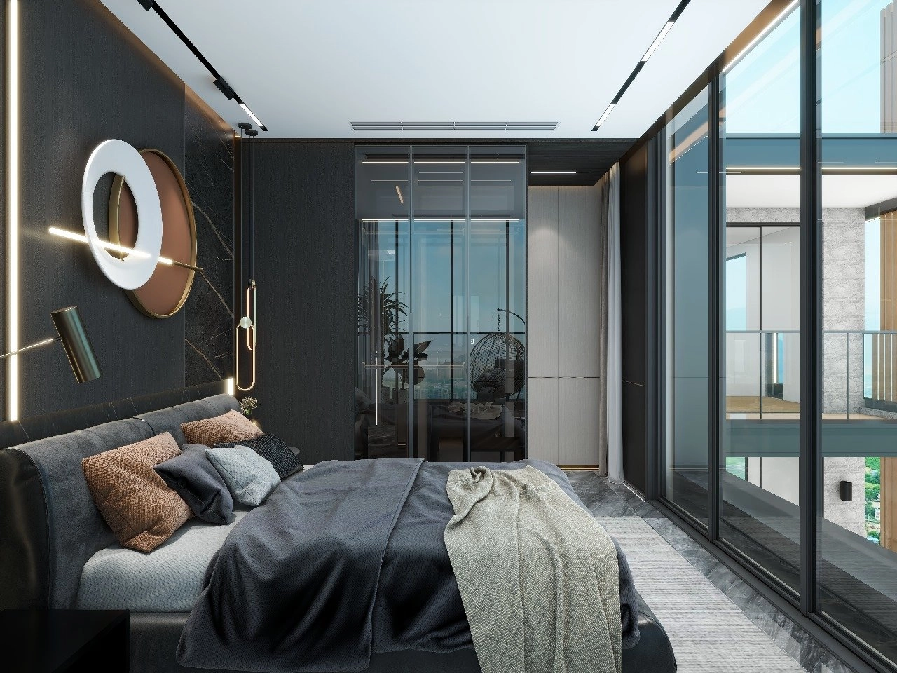 The modern kitchen features premium materials, clean architectural lines, and practical functionality, making it perfectly suited for both daily living and entertaining. Each of the three private rooms is generously sized and thoughtfully arranged to provide comfort, privacy, and flexibility — ideal for families, guests, or work-from-home needs. The master suite offers enhanced comfort with ample space and access to refined modern finishes.