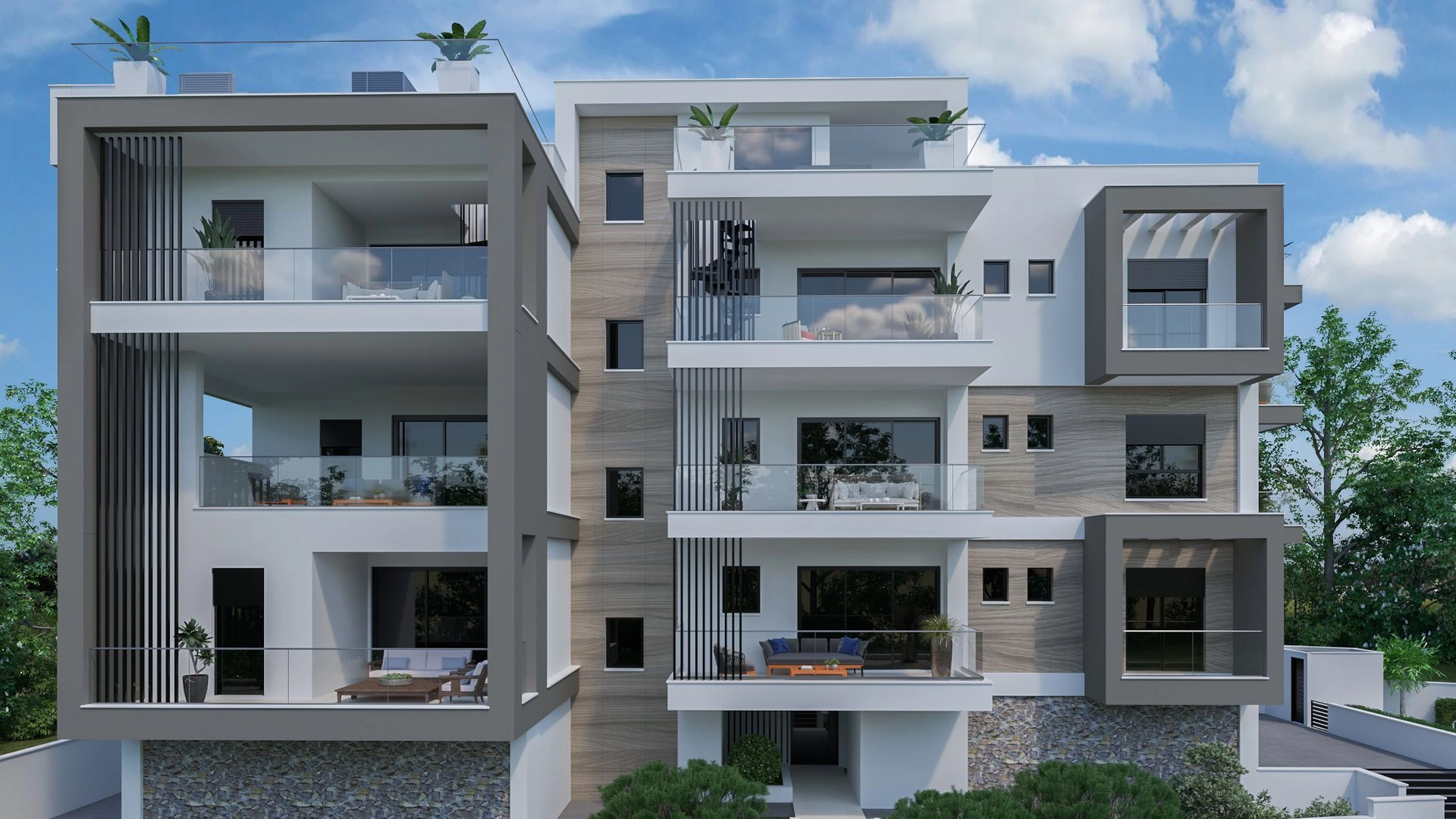 This block of apartments will consist of the residences with 1, 2 and 3 bedrooms, the top floor ones having the private roof garden. The project will be located in Panthea area, in Limassol, having panoramic views. The area is residential and quiet, suitable for the family living with all the necessary amenities being in short distance from the development. The Project has EPC certificate with “B” Energy Efficiency Rating.