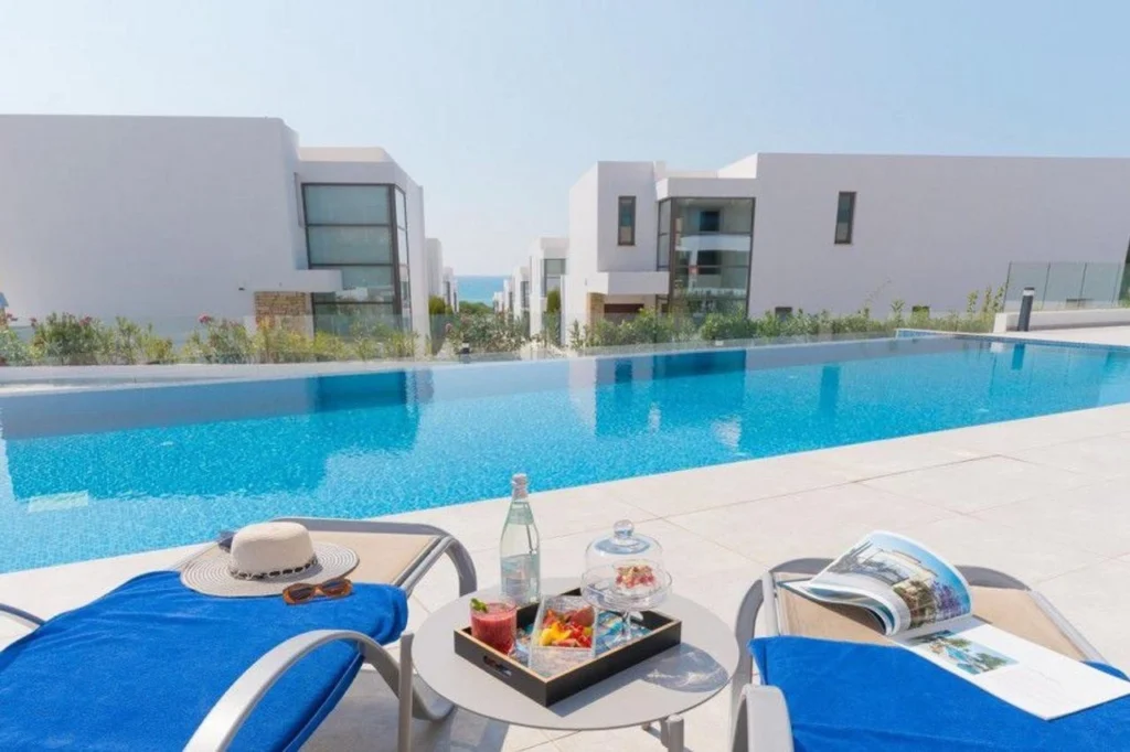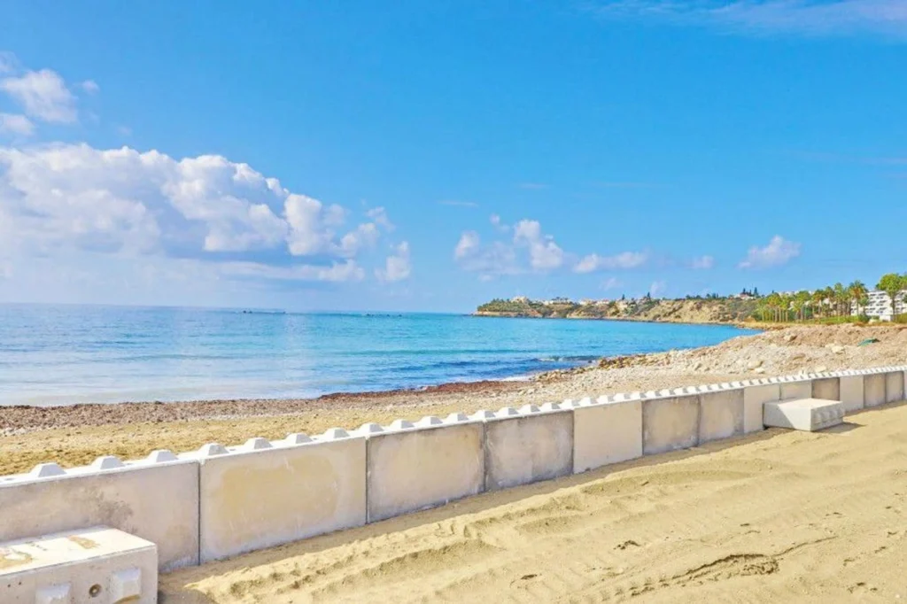 Situated on a prime stretch of the Paphos coastline, this 2-bedroom apartment offers a combination of exclusive beachfront living and timeless design. Set within a luxurious resort of villas and apartments, the residence enjoys an elevated position overlooking an untouched beachfront, with sweeping sea views and captivating sunsets. The apartment provides 86 m² of interior space and a total of 100 m² including the veranda, creating a comfortable layout for relaxation and everyday living. The location places residents near the popular Coral Bay Blue-Flag beach and close to the vibrant amenities of Paphos. The development also borders the future Paphos Marina, planned to accommodate up to 1,000 vessels, positioning the area as one of the most desirable on the island. Title deed is available. The main features of the project and the unit: • 2 bedrooms • Internal area 86 sqm • Total area with veranda 100 sqm • Panoramic sea views • Beachfront location • Near Coral Bay beach • Close to Paphos city amenities • Adjacent to the planned Paphos Marina • Title deed available The project has an EPC certificate with “A” energy efficiency rating.