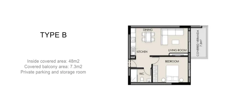 Extra: Provision A/C, Covered Veranda, Covered Parking, Storage, Common Swimming pool, Gym, Sauna, Next to Green Area