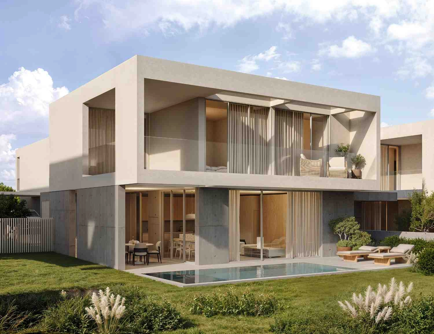 3 bedroom villa with pool for sale in a luxury project in Geroskipou, Paphos. This is an exclusive complex of 19 three-bedroom villas located in a picturesque location. Each villa is an example of sophisticated modern elegance. The ideal location is close to all necessary amenities, the cleanest Blue Flag beaches, world-class golf courses, prestigious private schools and just a 10-minute drive from Paphos International Airport. Each villa has been carefully designed for stylish, modern and comfortable living with an open floor plan. Spacious outdoor spaces complement the living space, including a private pool, a built-in barbecue area, and private parking. Each house is decorated with high-quality materials and handmade, which creates an atmosphere of luxury, comfort and modern island life.