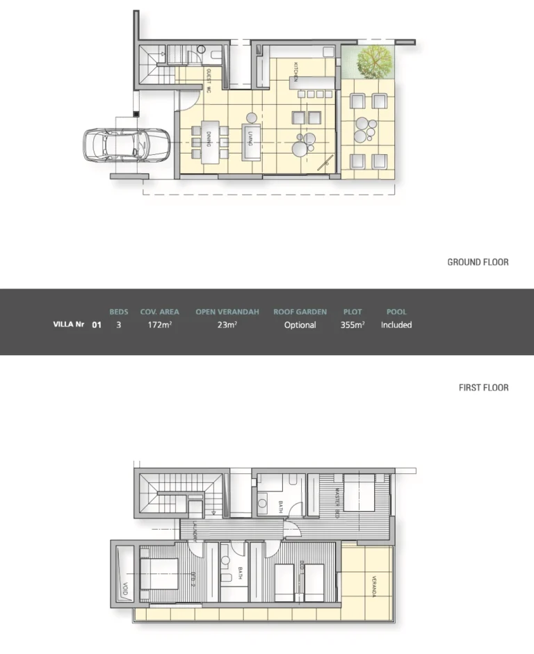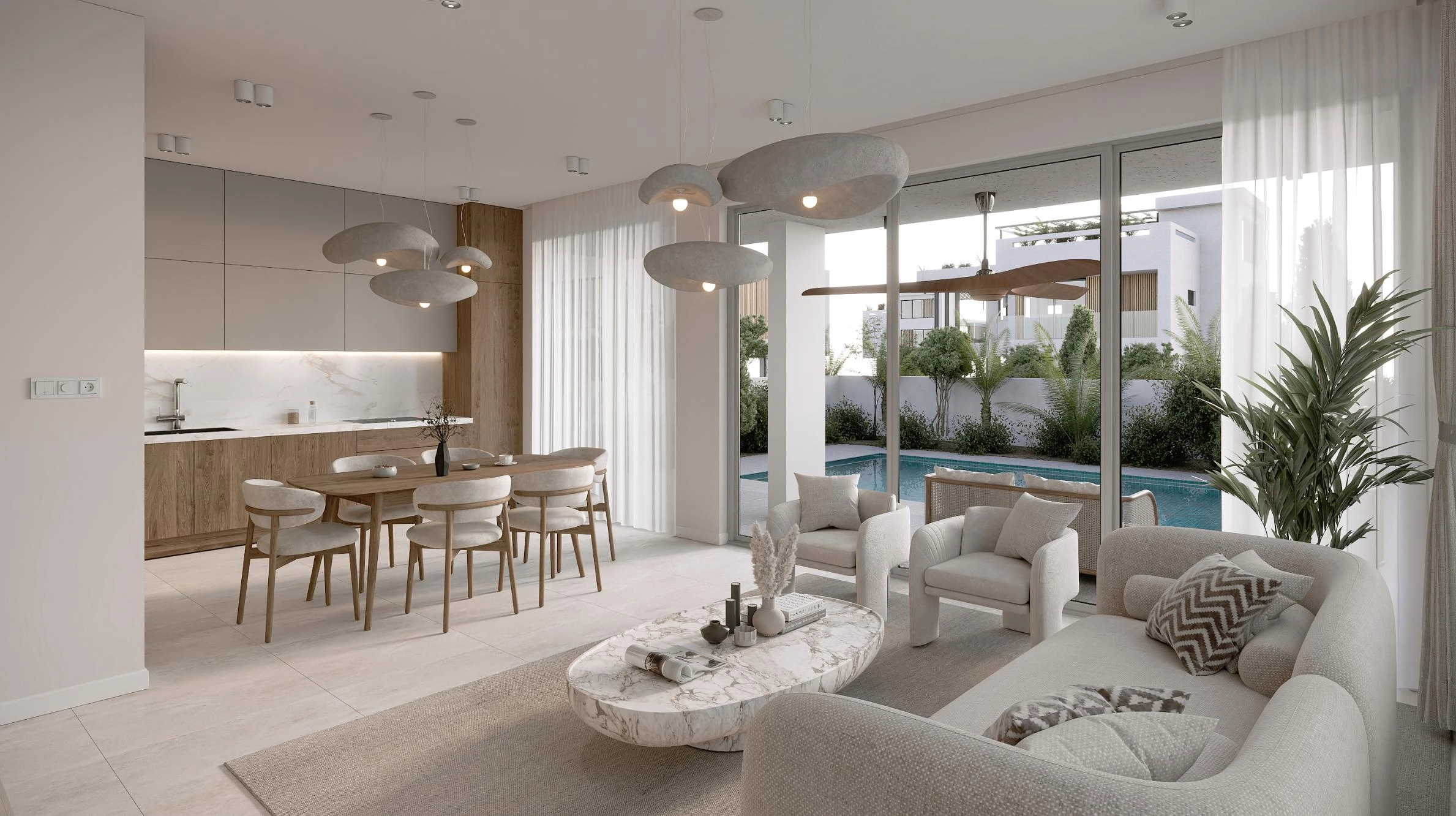 3 bedroom villa for sale in a new project in the heart of Ayia Triada, just 700 meters from the new Paralimni marina and 500 meters from the beach. This exclusive complex includes 31 elegant villas, each with a private pool and a rooftop garden, designed for maximum privacy, comfort and refined aesthetics. Natural materials (wood, stone, metal) and clean minimalist lines create a calm, refined environment. Spacious terraces, plenty of natural light and advanced smart home features take everyday life to a new level. Its excellent location provides easy access to the Blue Flag beaches, highway and Larnaca International Airport. Thanks to the rapidly developing marina area, which attracts large investments. The villas are designed taking into account the climatic conditions of the region and belong to the energy consumption class A.