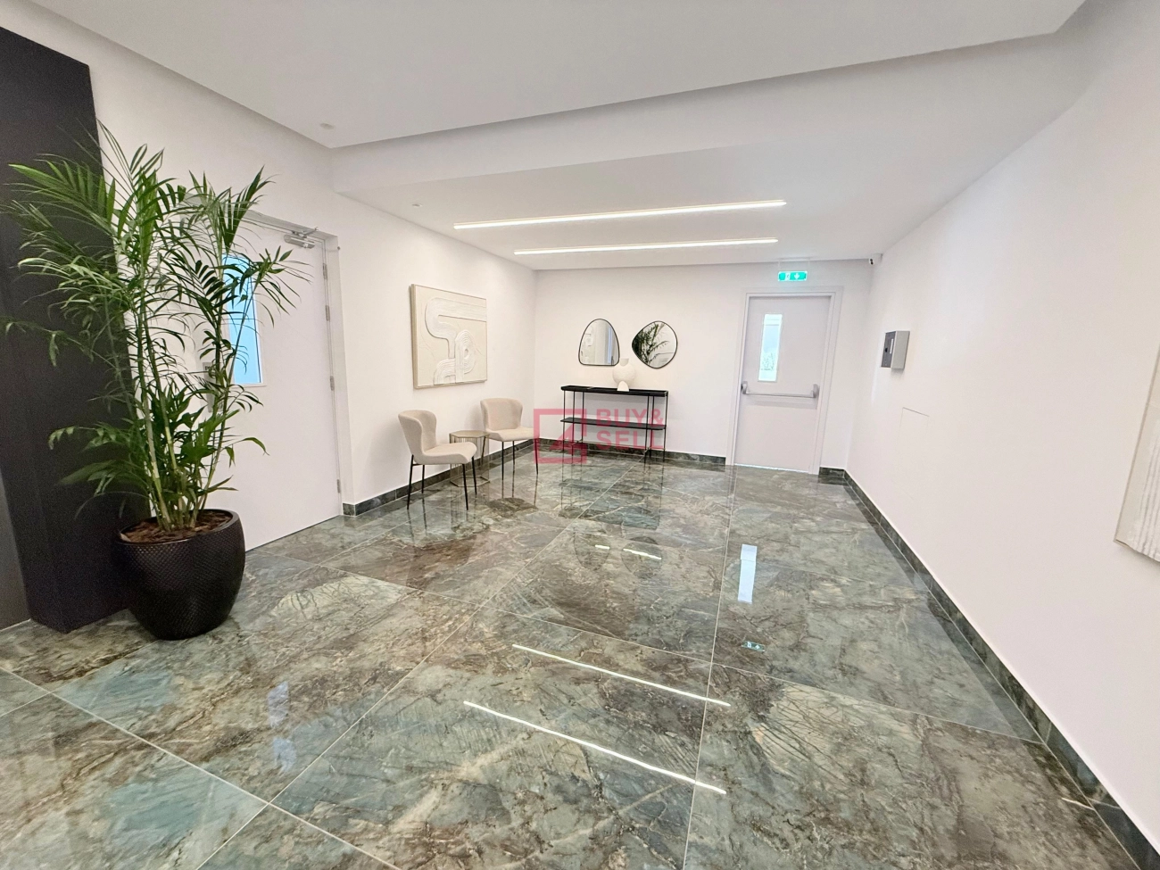 • Kitchens, toilets, and corridors ceilings decorated with gypsum boards with built-in spotlights.