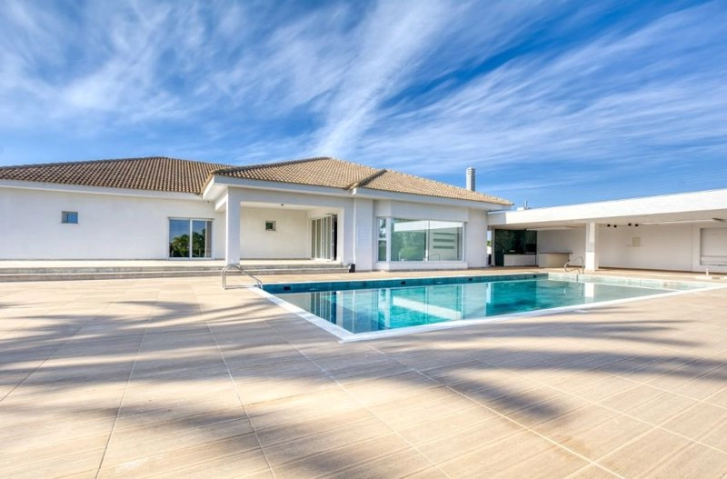 Three Bedroom Detached Bungalow For Sale in Paralimni, Famagusta – Title Deeds Available A Renovation that redefines ‘New’. Originally built in 2002 and completely reimagined in 2025, this villa has undergone a full-scale, premium renovation, not just cosmetic upgrades, but a transformation that brings the property to a truly wow level. High-end materials and designer finishes throughout, brand-new mechanical and electrical systems, modern architecture infused into every room and luxury fixtures, custom carpentry, and elevated interior styling. The result? A home that looks, feels, and performs like a brand-new luxury residence crafted for today’s lifestyle and tomorrow’s standards. Enjoy breathtaking views from both indoor spaces and expansive outdoor terraces designed for relaxation and entertaining. Whether in the interiors or lounging around your private pool, you will soon experience firsthand that villa was created to offer the essence of the island lifestyle, where beautiful beaches, resort entertainment, daily conveniences and evening entertainment are all within easy reach. - Master bedroom with ensuite facilities and walk-in wardrobes - 2 Bedrooms with ensuite facilities & fitted wardrobes - 1 Bedroom with fitted wardrobes - Open plan living, dining and kitchen area - Games/play room - Fully fitted and equipped kitchen - Family bathroom - Guest W/C - Laundry room - Air conditioning - Central heating - Indoor fireplace - Double glazing - Thermal insulation - Fully furnished - Private swimming pool - BBQ area - Photovoltaic Panels - Electric shutters - Landscaped gardens with irrigation system - Alarm system - Garage - Internal 339 m2 - Plot 2774 m2 - Sea Views - Close to all local amenities - 7 Minutes to Paralimni Square - 7 Minutes to the nearest beach - 9 Minutes drive to Protaras Pier with a variety of watersports - 14 Minutes drive to Ayia Napa - 42 Minutes to Larnaca International Airport - Suitable for Cyprus Permanent Residency - No VAT - Energy Efficiency A+ Paralimni Paralimni is the largest town on the island’s east coast and has a lovely mix of both modern & old architecture. The word Paralimni means ‘by the lake’. Historically, the town was built on the shores of a shallow lake which is often dry during the summer months and fills with water and flocks of migrating flamingos during the winter. At its heart lies a shopping centre and small entertainment scene, including cafes, bars, restaurants, supermarkets & banks and is suitable for both permanent & holiday living. You are also only a 10 minute drive to a variety of beaches. ———— * Title Deeds Available * Private Swimming Pool & Landscaped Gardens * Fully Furnished * Suitable for Cyprus Permanent Residency * No VAT * Resale * Energy Efficiency A+ Paralimni Paralimni County: Famagusta Sale Type: For Sale Ref #: EUR010R4
