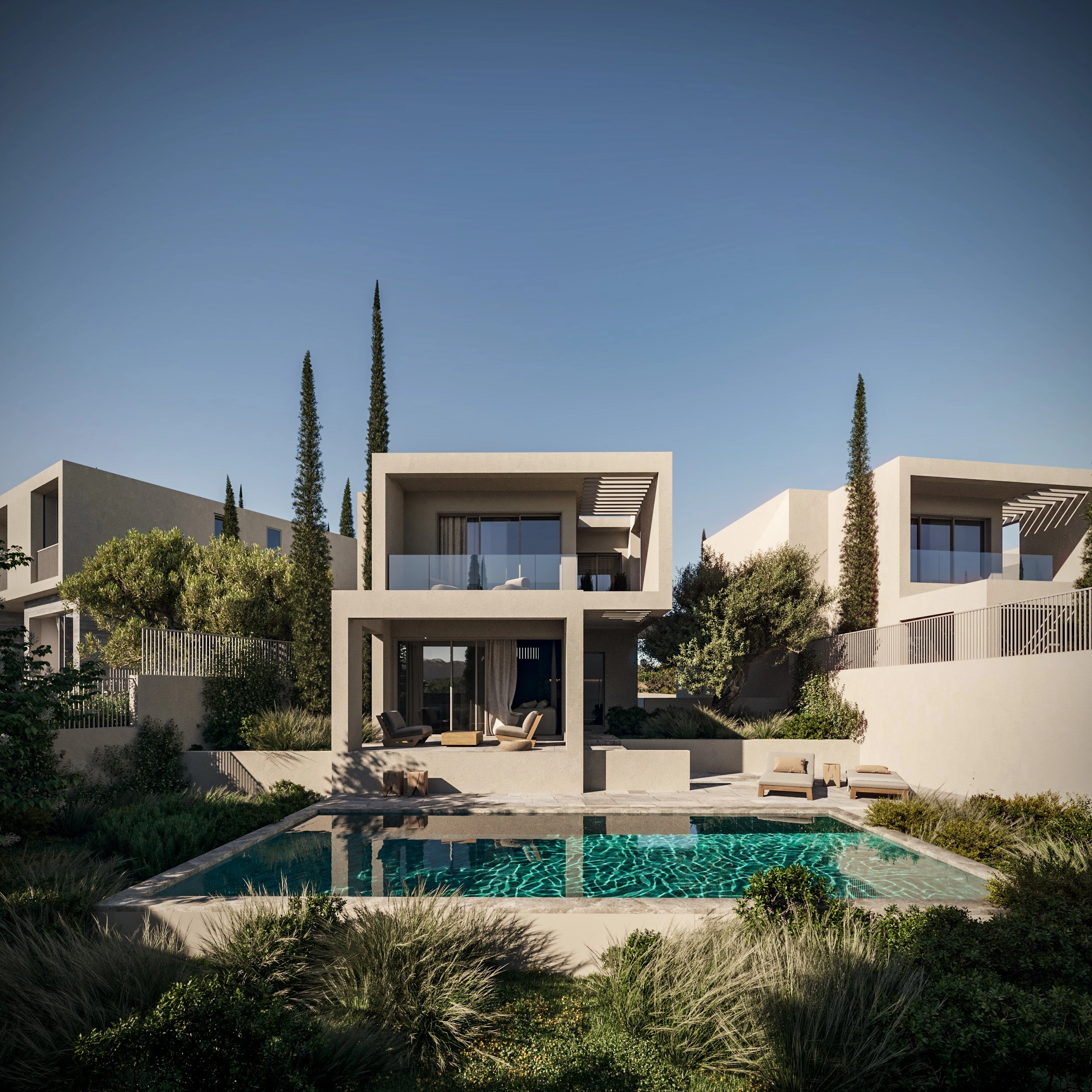 Designed for those who value space and refined living, these 3-bedroom villas offer expansive interiors and outdoor areas perfect for entertaining and relaxation. Each home boasts a thoughtfully arranged layout with flowing living areas, ensuite bedrooms, and large terraces that capture spectacular views of the sea and countryside.