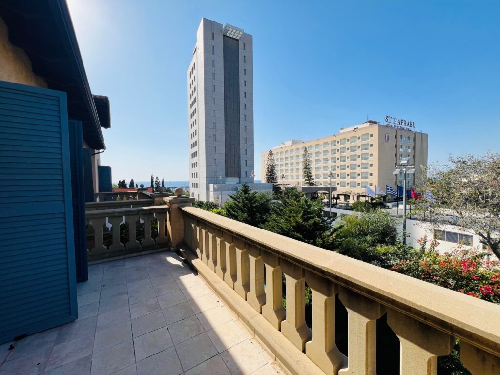 For sale luxury 3 b/r duplex with a side sea views located in a private gated seafront complex in Pyrgos area next to St. Raphael hotel, withing walking distance to amenities and with easy access to the highway. The internal area is 209 sq. m +15 sq. m covered veranda. It consists of 2 levels: on the first floor there is an entrance area, spacious living room with a dining area, separate kitchen with a laundry room and guest WC with shower. On the second floor there are three bedrooms: spacious master bedroom en-suite with walk-in wardrobe and also bathroom plus another 2 bedroom each en-suite with a shower. The apartment is fullly furnsihed and equipped, with a central air conditioning system, double-glazed windows with shutters, natural parque floor, security sysrtem with alarm, water pressure system and 1 uncovered parking. The compex has 24 hour security, fountains, landscape gardens, common swimming pool with relaxation area, gym, guest parking and private access to the beach. Title deeds is available.