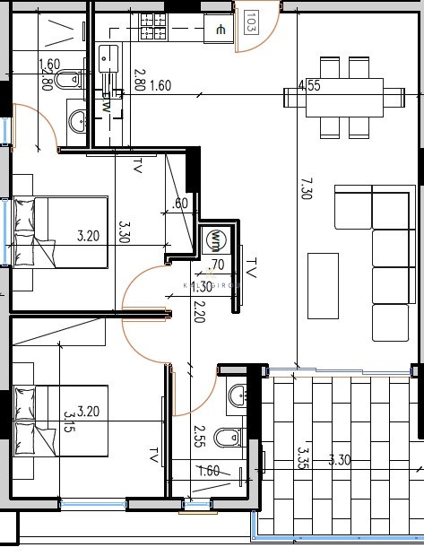 Stunning Apartment for sale in Larnaca area. The apartment is situated on the first floor and it consists of an open plan kitchen with living room, two bedrooms, one en- suite shower with W/C and a main shower with W/C.
