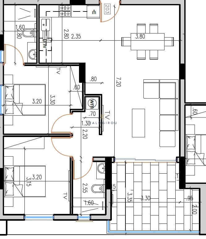 Amazing Apartment for sale in Larnaca area. The apartment is situated on the second floor and it consists of an open plan kitchen with living room, two bedrooms, one en- suite shower with W/C and a main shower with W/C.