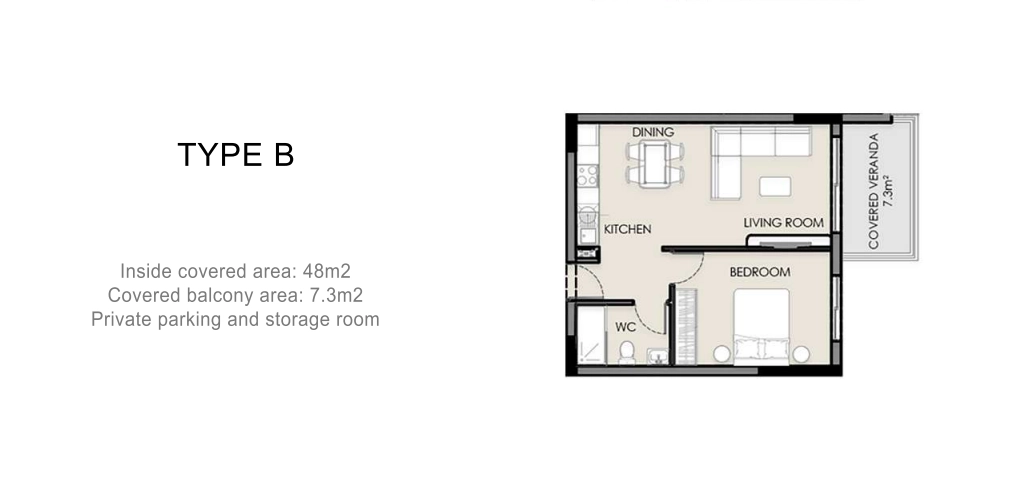 • Internal Area: 48 m²