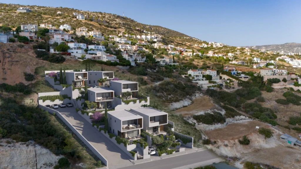 Perched on the quiet hillsides of Peyia, this boutique collection of six contemporary villas offers a refined take on Mediterranean living, framed by sweeping views of Coral Bay and the coastline. Each residence is thoughtfully placed along the natural slope, creating a sense of privacy while maintaining a harmonious architectural rhythm. Clean geometric lines, deep terraces, and warm textures define the design, giving every villa a distinct yet unified identity.