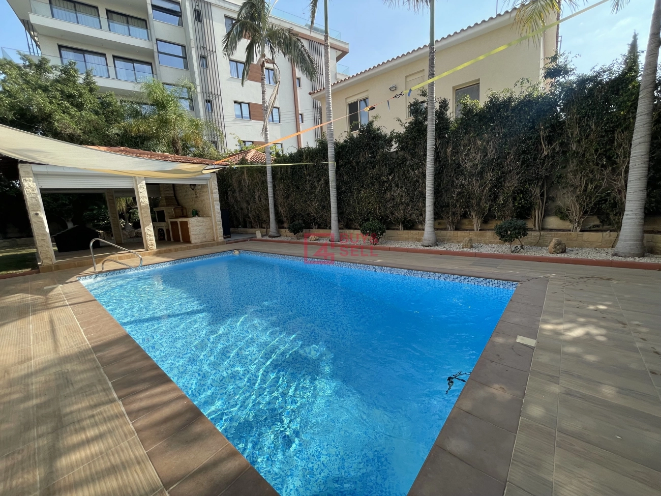 ◼ The property is located in the highly desirable Potamos Germasogeia Tourist Area, just a 5–6 minute walk to the beachfront and close to all amenities, yet positioned on a quiet residential street offering complete privacy surrounded by lush greenery.
