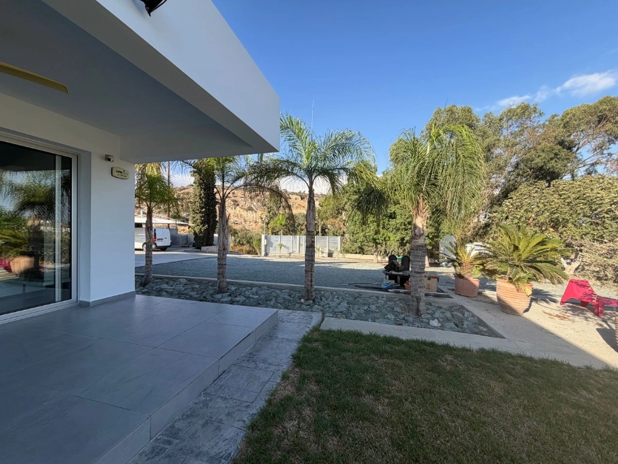 A stylish detached house on a 1,600 sq.m plot with 270 sq.m of covered living space. The property features a master bedroom with en-suite bathroom, two additional bedrooms, an office, and a separate bathroom. The open-plan kitchen and living area offer stunning sea and mountain views. The home is fully equipped with A/C throughout, water softening and purification systems, a fireplace, solar hot water, a laundry room, and a storage room. High security is ensured with an alarm system, CCTV, and monitored gate access. Excellent sound and heat insulation. Parking for up to 5 cars. Located just a 10-minute drive from the beach, this villa is ideal for comfortable living or as a high-return rental opportunity.