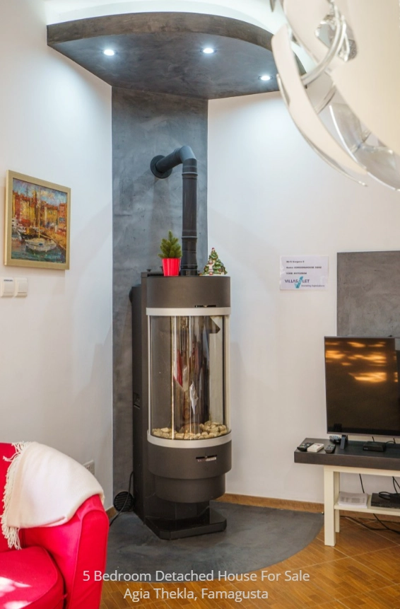 Inside, the villa is fully furnished and move-in ready. The layout includes 5 comfortable bedrooms and 3 bathrooms, making it perfect for large families or guests. Enjoy cozy winter days with underfloor heating and a fireplace, while summer days can be spent around the private swimming pool or enjoying the coastal breeze.