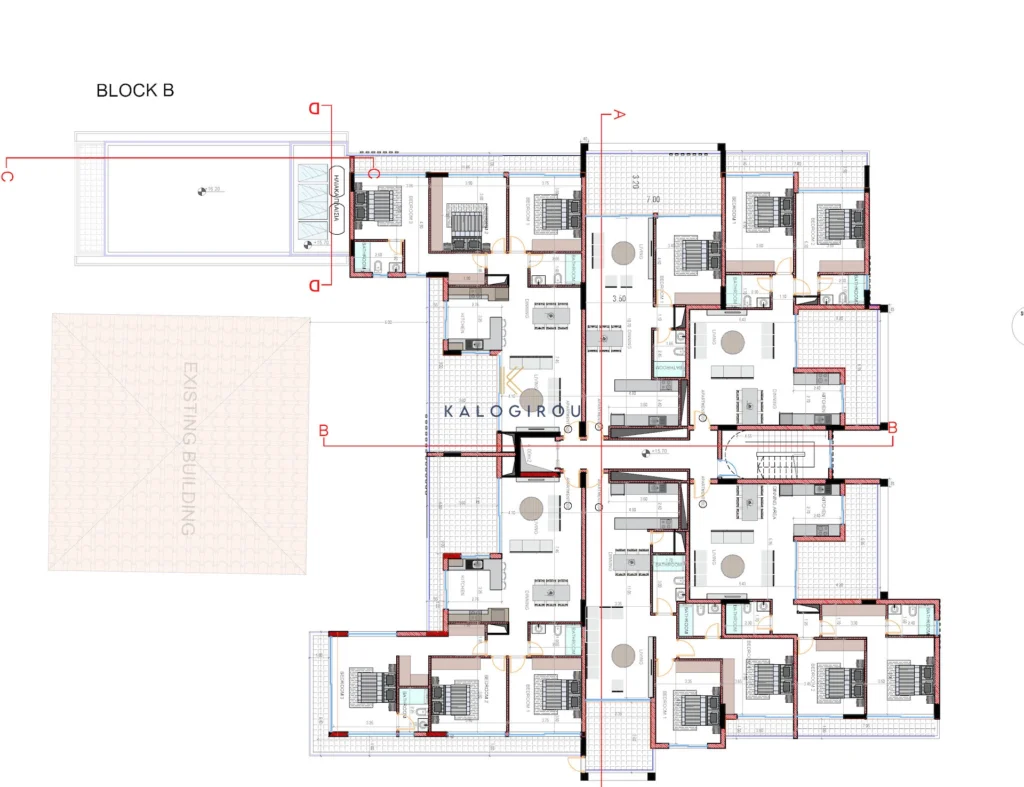 The apartment is part of a collection of 34 exclusive apartments in a prime Paphos location, designed to provide the perfect blend of comfort, convenience, and elegance. The project beautifully integrates modern architecture with a historic landmark building at its centre, which will be carefully preserved and transformed into a clubhouse for residents. Within the clubhouse we will o!er personalised concierge, cleaning, maintenance and property management services, designed to make your life e!ortless. The development also features a communal pool, gym, sauna and massage rooms, and a welcoming cafe.