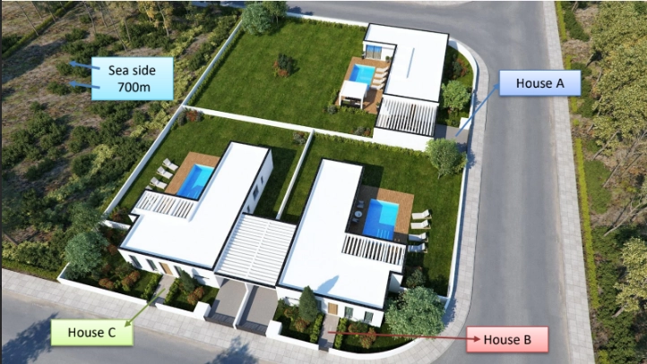 The development comprises 26 modern homes, each showcasing elegant architecture and premium-quality finishes. The properties feature two or three bedrooms and come complete with private parking, landscaped gardens, a private swimming pool, and direct beach access. Select units also include rooftop terraces offering beautiful panoramic views.