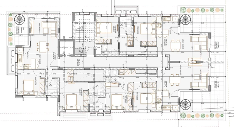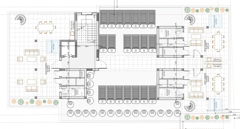 Sixth floor apartment, for sale in American Academy area, Larnaca. The flat consists of an open plan kitchen-living-dining area, main bathroom with walk in shower, two bedrooms-master bedroom is en suite and covered veranda. Furthermore, there is a roof garden which consists of the veranda area, shower room, mechanical room, storage and provision for Jacuzzi and BBQ are. The residents have also right of use to a covered parking and storage on the ground floor.