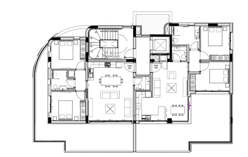 Apartments for sale in a new complex in the prestigious area of Agios Athanasios. The building consists of 3 floors and offers four 2 bedroom apartments and one 3 bedroom penthouse. The building has an elevator. Each apartment has a parking space and a storage room. The convenient location provides easy access to the highway and all necessary amenities. Neutral tones and a minimalist style are used in the interior of each apartment. The interior includes high-quality Italian ceramic flooring in the living room and dining room, Ter Hurne parquet floor, drywall with LED strips and spotlights. The bedrooms are equipped with parquet floors and spacious wardrobes, the bathrooms have high–quality ceramic tiles and sanitary ware from Ideal Standard. The complex has split air conditioning systems on the 1st and 2nd floors. The facility has a Class A energy efficiency certificate, photovoltaic systems and external thermal insulation. Sliding aluminum doors and windows with Stopray Smart thermal glass provide a high level of thermal insulation. The penthouse has additional privileges: underfloor heating and separate climate control in each room, VRV systems from Mitsubishi Electric or Daikin, a built-in Jacuzzi on the veranda and an outdoor barbecue area with an island.