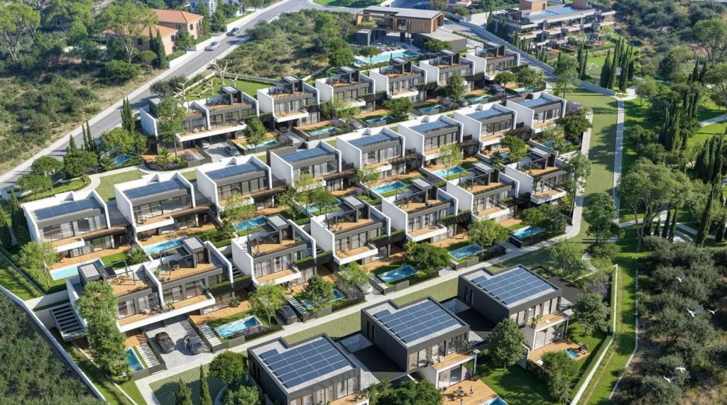 House for sale in a prestigious complex in Limassol, Agios Athanasios. Modern infrastructure, high quality materials, convenient location. The house features: an entrance door with an intercom, energy-saving windows are installed, the floor is covered with laminate and high-quality ceramic tiles, hidden air conditioners in each room, as well as there is preparation for a “warm floor”, there is a smart heating and cooling control system, a place to charge an electric car. Energy efficiency: there are solar panels, as well as thermal and sound insulation, which ensures almost zero energy consumption. The complex features: protected area, Club House, play and sports areas, charging stations for electric vehicles. Among the facilities: swimming pool, gym, lounge area, work area, yoga lawn, dog park and much more. The complex is located near all urban infrastructures.