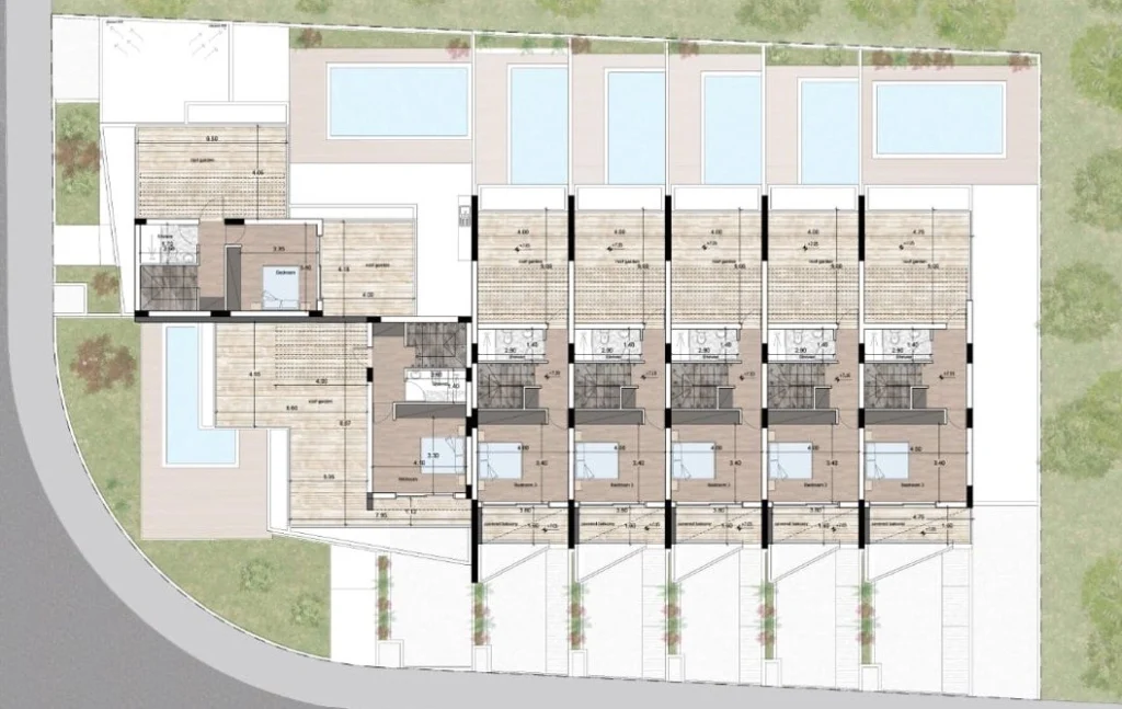 Set within a gated community, the development comprises 3- and 4-bedroom townhouses thoughtfully arranged to provide a refined sense of privacy, comfort, and contemporary elegance. Each home features a smart system, a private swimming pool, and a unique layout that places one bedroom on the uppermost level with direct access to a roof garden – an inviting retreat for enjoying the Mediterranean climate and beautiful views.