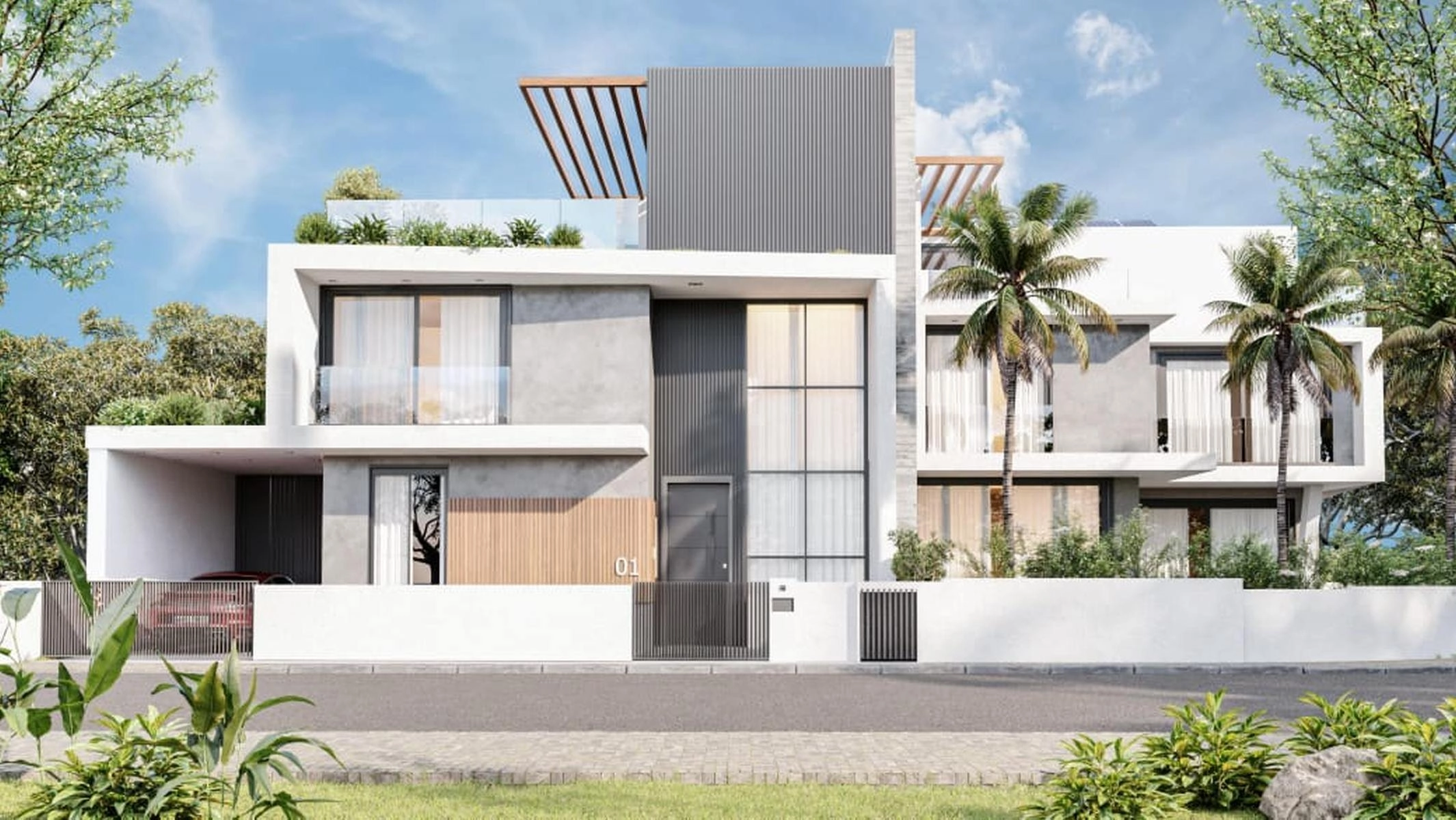 Set within a gated community, the development comprises 3- and 4-bedroom townhouses thoughtfully arranged to provide a refined sense of privacy, comfort, and contemporary elegance. Each home features a smart system, a private swimming pool, and a unique layout that places one bedroom on the uppermost level with direct access to a roof garden – an inviting retreat for enjoying the Mediterranean climate and beautiful views.
