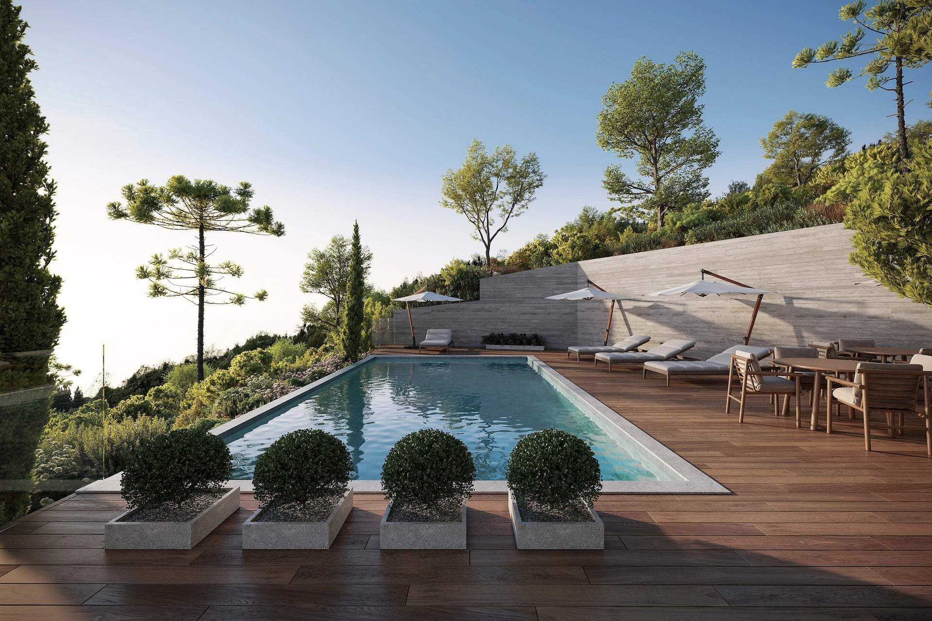 Communal Overflow Pool – Elegant infinity-style pool for relaxation and leisure.