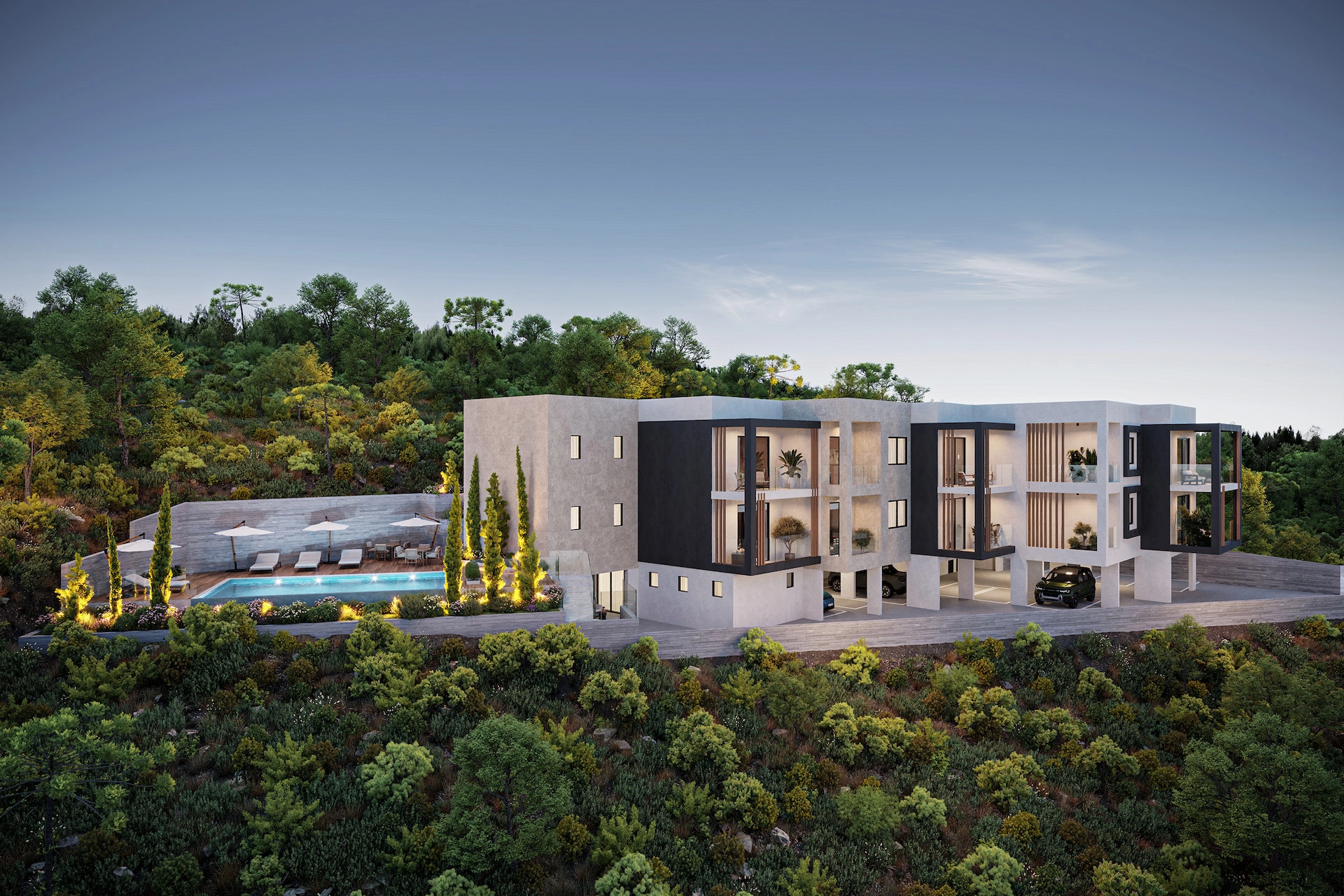 Discover an exclusive collection of just eight modern residences, perfectly elevated on the peaceful hills overlooking Paphos. These beautifully crafted 1-, 2- and 3-bedroom apartments combine contemporary architecture with natural surroundings, offering bright open spaces, large windows and seamless indoor-outdoor living.