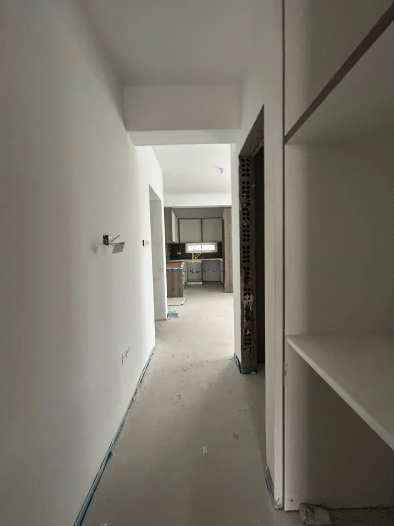 Apartment for sale in Drosia area, Larnaca. The property consists of an open plan kitchen, living and dining area, two bedrooms, the master bedroom has en suite shower with wc and one common bathroom with wc. Also, the apartment has a private parking space area and storage room on the ground floor.