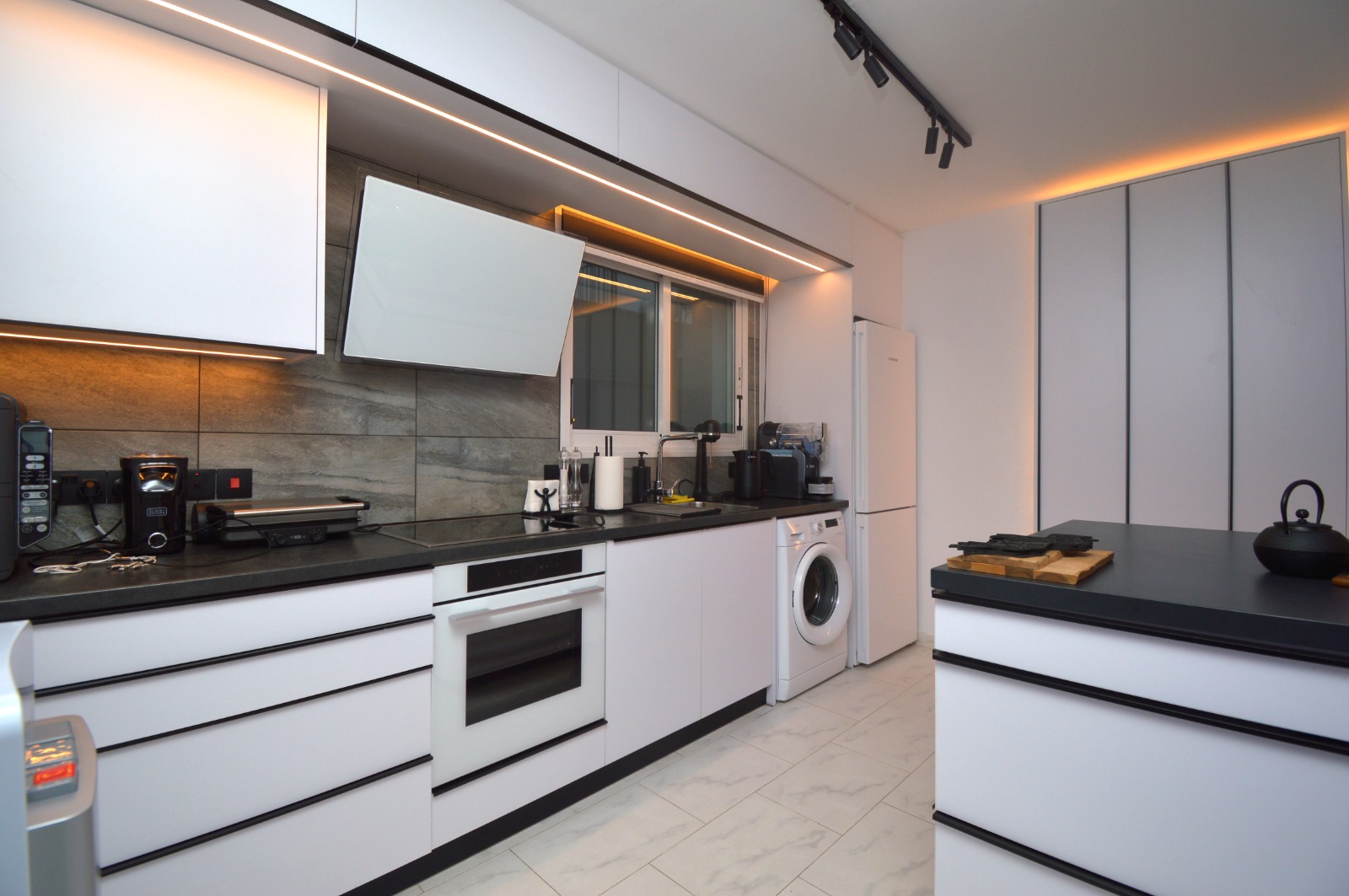 Fully Renovated 2024 three-bedroom apartment near to Salaminas roundabout Larnaca. The apartment consists an open plan kitchen with island , guest toilet, main shower and wc, three bedrooms and two covered verandas.