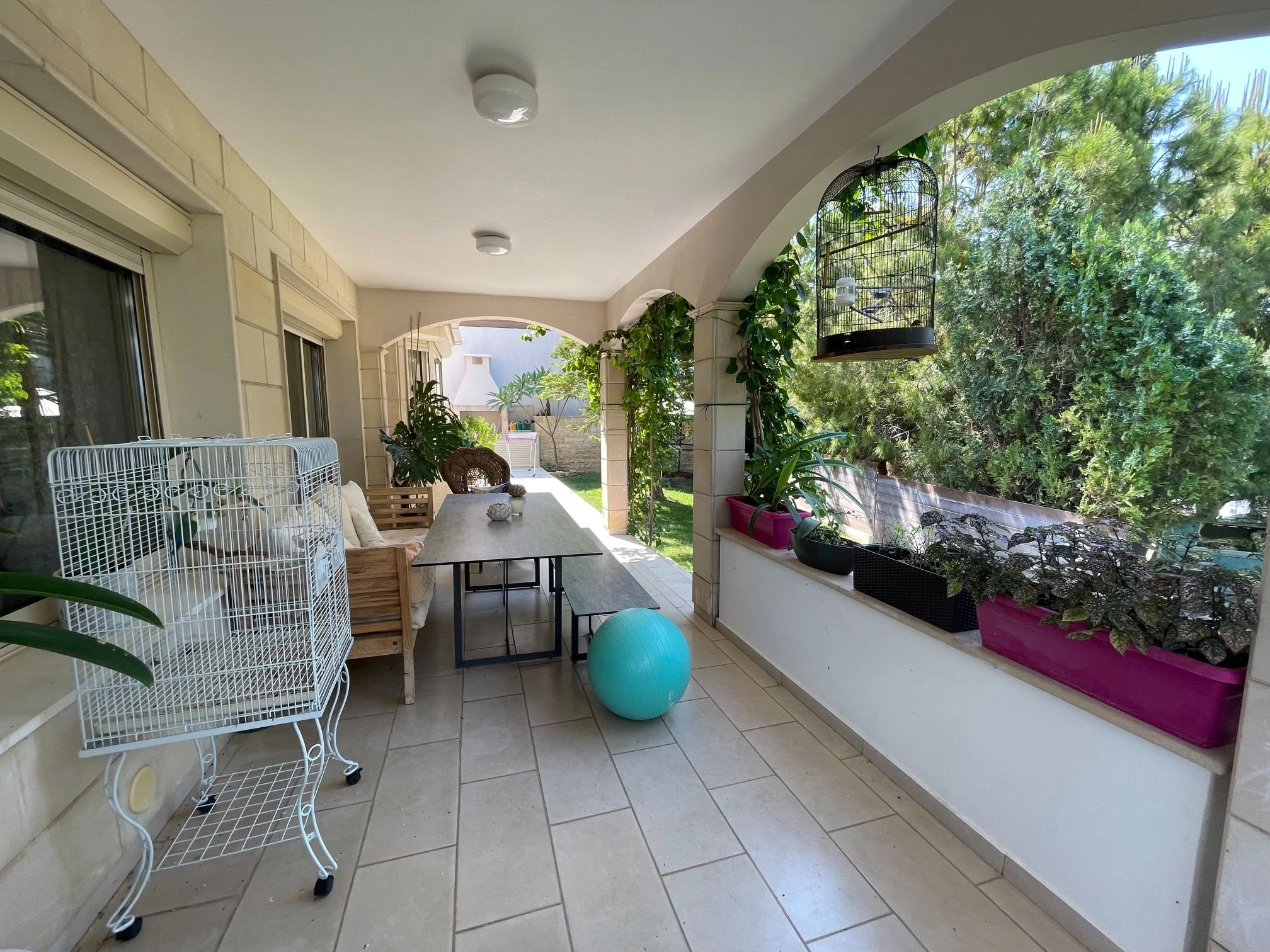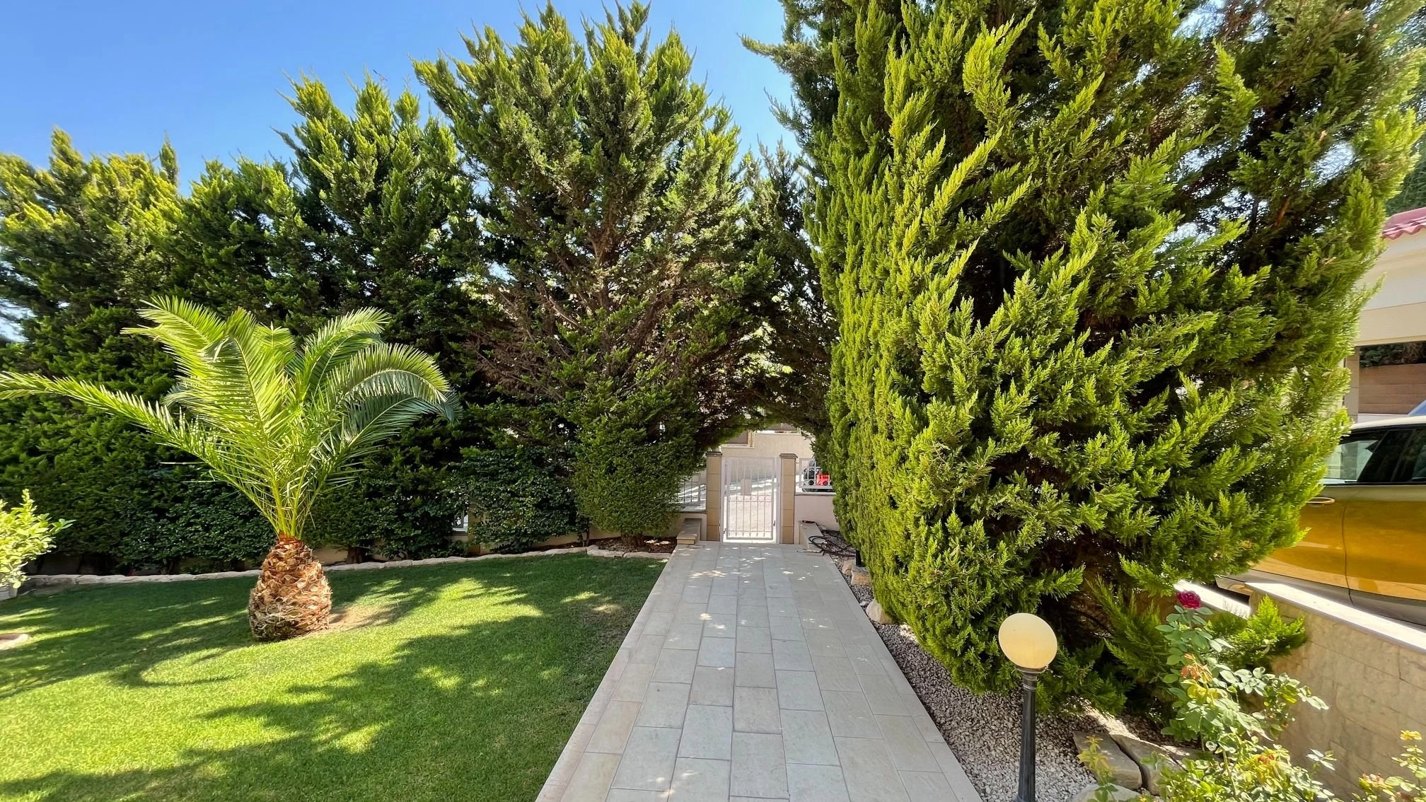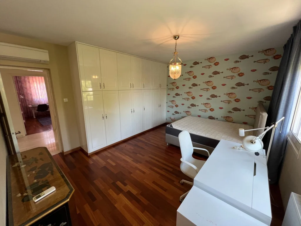 The 5-bedroom villa with spectacular views of the mountains, sea, and the city is located in the most prestigious area of Limassol, on one of the hills of Agios Tychonas. The covered area of the house is 495 sq.m, covered verandas 90sq.m, uncovered verandas 40sq.m, Land 1293sq.m. The pool size is 10 m to 4 m. The position of this villa is in harmony with its surroundings and has a large, carefully selected, gorgeous private garden with an irrigation system, patios, kid’s playground. The Villa has 4 floors – basement, ground floor, first floor, and attic. 5 bedrooms, four of them – en-suite, separate main kitchen, guest kitchen on the basement. The basement includes a large room with a bar, equipped with a home theatre system, billiards table, one bedroom with a bathroom and toilet, a laundry room, a small kitchen, and a sauna with a shower. There are two exits from the basement to the street. The basement can be used as a separate dwelling. The ground floor includes a living room with a working fireplace, an Italian fully equipped kitchen made of natural wood, equipment company Miele, a guest WC, and flooring – beige marble. Second floor: four bedrooms, three of which are equipped with a bathroom. There is also a storage room. Flooring – parquet. The third floor – the space under the roof, the size is 60 sq.m, currently used as an office, easily can be converted to an extra bedroom. Floors – laminate. All rooms are equipped with air conditioning cold/heat. All windows have electric shutters. All rooms are scattered over a lovely hillside, offering spectacular sea, mountain, and city views. The house is equipped with diesel central heating. The villa has a high-speed fiber internet connection. Also, there are 2 covered and 2 uncovered parking spaces.